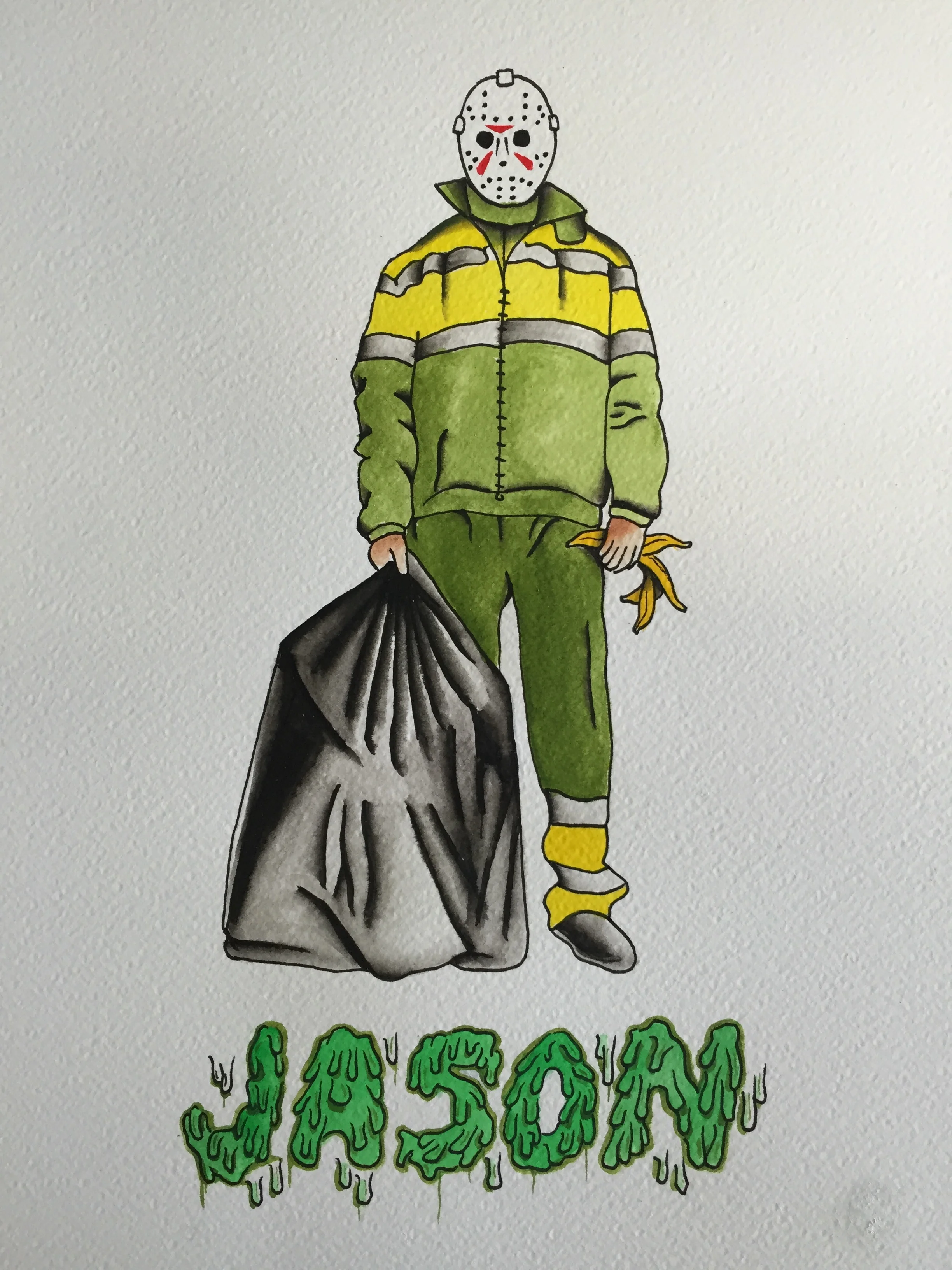 Jason attends to your every need in this one-piece zip-up. Say you’re stranded. Maybe you’ve run out of gas. Ring the bell and he'll lumber on over. Jason will get you to the other side, and quick!